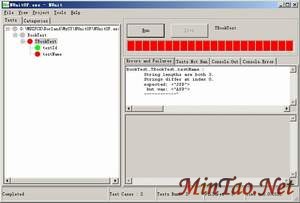 testId前的点依然是绿色,但testName前的点是红色,而且进度条显示为红条,这表明testName中存在错误。不过这个错误是预计之内的,如果不想看到,可以在Delphi中将testName()方法中的”JSP”改成”ASP”,然后重新运行。此时无须重新启动NUnit,NUnit会自动加载重新编写好的文件。此时再运行BookTest,进度条已不是红色,而是绿色了。 六、说明 本文是对《NUnit学习笔记之Delphi 2005篇》的修正,NUnit和Delphi都使用了新版本。NUnit 2.2.6对2.2.0进行了很多扩展,这从对NUnit.Framework.Assert和NUnit.Framework.StringAssert的介绍就可以看出来。 其实以前感觉Delphi语法挺优美的,不过自从进入.net时代,就怎么看怎么不爽了。尽管也清楚,这是为了让Delphi程序员可以轻松进入.net世界,Borland也付出了很多劳动,而且Delphi还是我最最崇拜的Anders的杰作,但还是感觉别扭。看来人生经常也挺讽刺的。