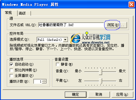 上图中,点击“浏览”按钮,打开寻找文件对话框,找到您所要播放的DAT文件,这样,就会自动填充上DAT文件路径及名称了。