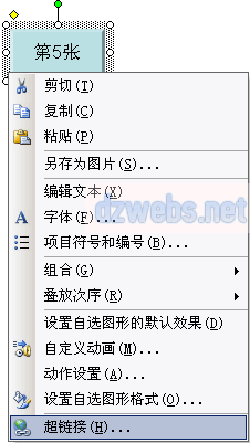 使用右键的操作方法:选择动作按钮,然后点击右键,选择菜单中的“超链接”,如下图!