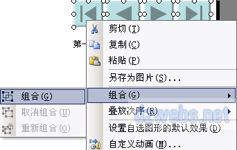 同时选中这四个按钮,然后点击右键,执行如下图的菜单操作:“组合”→“组合”。
