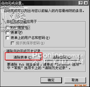选项”——“内容”——“自动完成”,把“自动完成功能应用于”下所有的勾都去掉,点击“清除表单”,