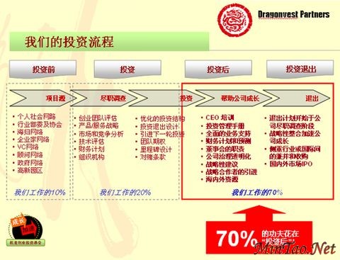 7) 当你和VC都在Termsheet上签了字,然后还有尽职调查、投资协议……没完没了的文字游戏之后你才可能见到钱的影子。当然,投资和被投资双方都有选择的权利,对于创业者来说,选择拿谁的钱也很重要,这话说起来容易,能做到的只有那些真正有实力的创业者!