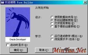 此时,Builder会启动欢迎对话框,如图1-2所示,选择“手动创建新表格”,去掉“启动时显示”对话框的选择,点击“确定”按钮,即可进入Forms的对象导航器中。