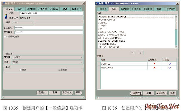 (2)切换到如图10.36所示的创建用户的【角色】选项卡。