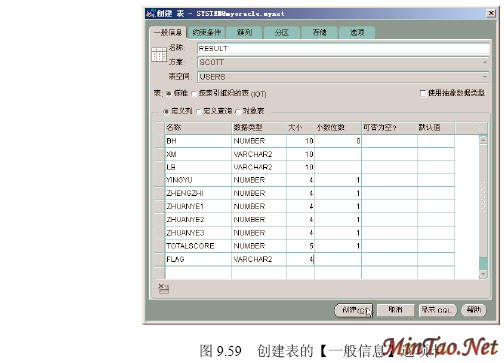在图9.59所示的创建表的【一般信息】选项卡中按照下列步骤进行配置。