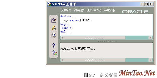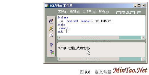 在【SQLPlus Worksheet】中执行下列PL/SQL程序,执行结果如图9.9所示。