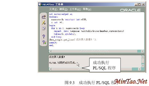 对完成上述数据插入过程的PL/SQL程序的分析如表9.1所示。