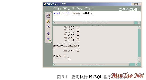 (7)在【SQLPlus Worksheet】中执行下列语句,查询插入的数据,结果如图9.4所示。
