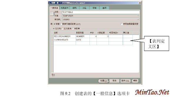 下面将为前面建立的tempuser用户建立一个名为testtable的数据表。