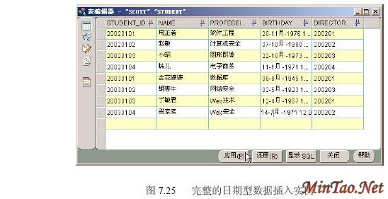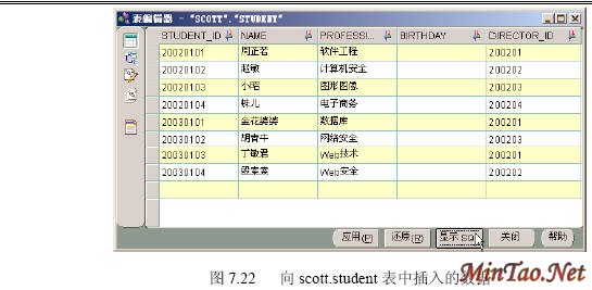 (4)最后完成完整的scott.student数据表数据的插入,如图7.25所示。