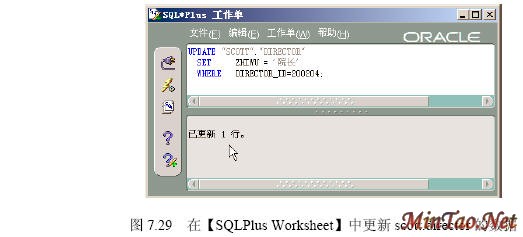 (6)在【SQLPlus Worksheet】中执行下列语句,作用是一样的。这是通过主码DIRECTOR_ID来定位记录的。这样的更新语句适合在不同的计算机环境上使用。