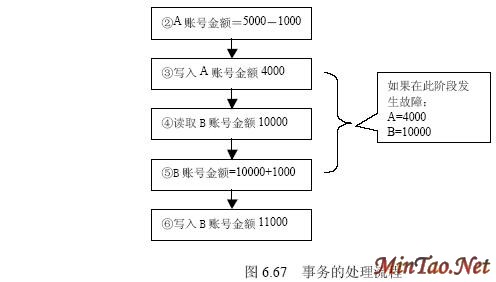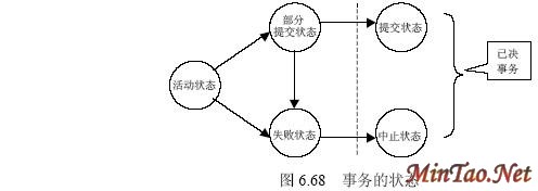 为什么引入事务概念 事务就是当前主流的数据库系统普遍采用的并发控制机制。 什么是事务 事务具有以下4个最重要的特征,按照每个特性的英文单词的首子母组合成为ACID属性。 1. 原子性(Atomicity) 原子性是指事务是一个不可分割的工作单位,事务中的操作要么都发生,要么都不发生。 2. 一致性(Consistency) 事务必须使数据库从一个一致性状态变换到另外一个一致性状态。 3. 隔离性(Isolation) 事务的隔离性是指一个事务的执行不能被其他事务干扰,即一个事务内部的操作及使用的数据对并发的其他事务是隔离的,并发执行的各个事务之间不能互相干扰。 4. 持久性(Durability) 持久性是指一个事务一旦被提交,它对数据库中数据的改变就是永久性的,接下来的其他操作和数据库故障不应该对其有任何影响。 什么是未决事务 对数据库进行操作的各种事务共有5种状态,如图6.68所示。 1. 活动状态 事务在执行时的状态叫活动状态。 2. 部分提交状态 事务中最后一条语句被执行后的状态叫部分提交状态。 3. 失败状态 事务不能正常执行的状态叫失败状态。 4. 提交状态 事务在部分提交后,将往硬盘上写入数据,当最后一条信息写入后的状态叫提交状态。进入提交状态的事务就成功完成了。 5. 中止状态 事务回滚并且数据库已经恢复到事务开始执行前的状态叫中止状态。 未决事务的处理方法——回滚 (1)在【企业管理器】中编辑数据库的配置参数,切换到如图6.69所示的编辑数据库的【撤消】选项卡。 (2)如图6.70所示界面。