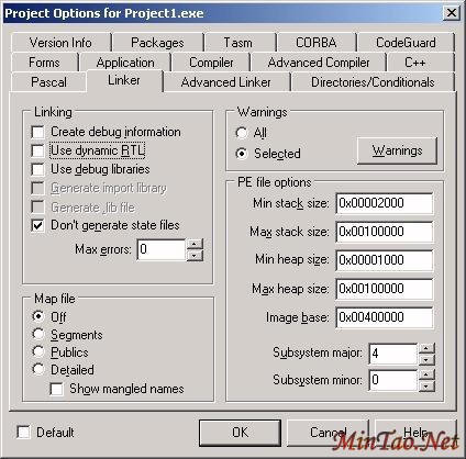下一步,进入同一个对话框的 Linker 页(见图 6),然后取消选定“Use dynamic RTL”选项。