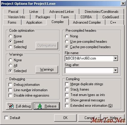 在部署之前,您应该进入 Project Options 的 Compiler 页(见图 5),然后点击 Release 按钮。这样会为发布目标设置所有的编译器选项。