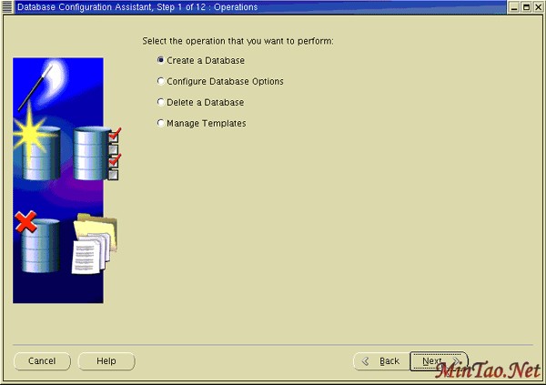 4. 在 Operations 窗口选择 Create a Database ,开始一个调查,使您可以配置并创建数据库。 单击 Next 。