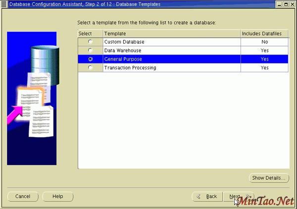 5. 在 Database Templates 页面上,选择创建数据库使用的数据库模板类型。 您可以单击 Show Details 查看每种数据库类型的配置。 选择适合于您的数据库将支持的工作负载的类型的模板。 如果您不确定,选择默认的 General Purpose 模板。单击 Next 。