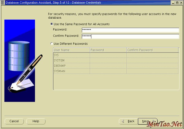 22. 数据库创建后,您能够更改或解除您的密码或单击 Exit 。