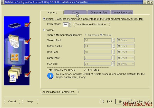14. 出现 Memory 页面。 选择 Typical 并输入百分比值。 单击 Sizing 选项卡。