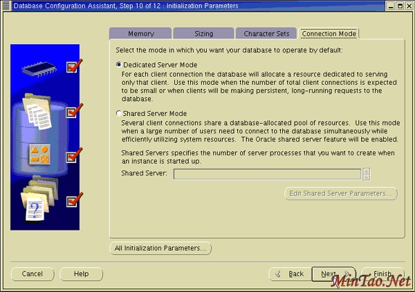 17. 出现 Connection Mode 页面。 也选择适合您的环境的专用服务器 或共享服务器 。单击 Next 。