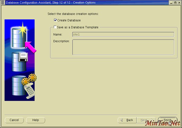 19. 选择 Create Database 创建您的数据库。 您也可以选择 Save as a Database Template 保存您的配置。 单击 Finish 。