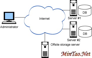 在下一个例子中我们将应对这一挑战,我们将分析一个如图 1 所示的假想的分布式网络,它展示了对两台 远程服务器和一台离线存储服务器的系统管理。