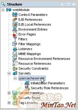 打开web.xml文件,你可以找到关于UserCacheServlet声明和访问的部署描述信息: