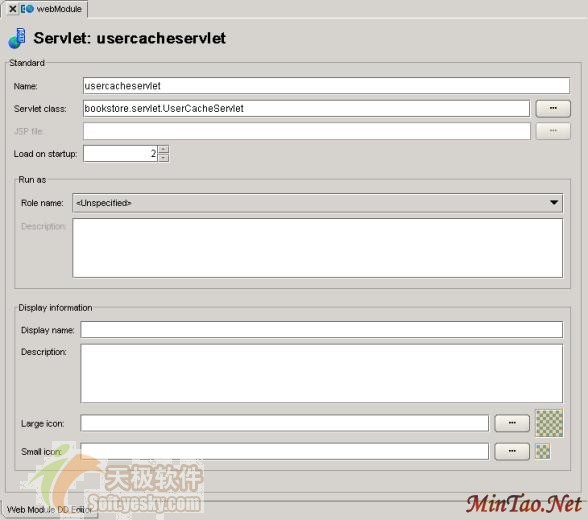 ·URL pattern:/usercacheservlet,访问这个Servlet的匹配路径。指定这个访问路径后,假设Web应用程序部署在http://localhost:8080/webModule下,则通过http://localhost:8080/webModule/usercacheservlet访问servlet。