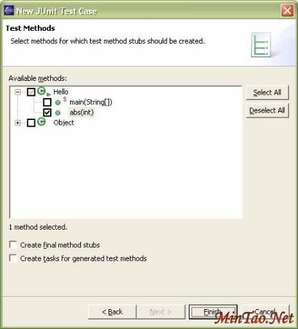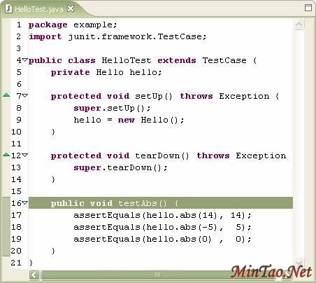 选择要测试的方法,我们选中abs(int)方法,完成后在HelloTest.java中输入: