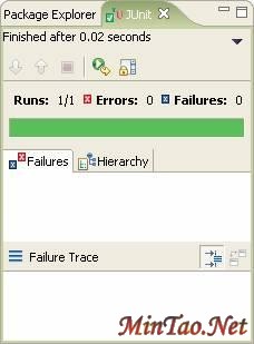 JUnit会以以下顺序执行测试:(大致的代码) try {HelloTest test = new HelloTest(); // 建立测试类实例test.setUp(); // 初始化测试环境test.testAbs(); // 测试某个方法test.tearDown(); // 清理资源}catch… setUp()是建立测试环境,这里创建一个Hello类的实例;tearDown()用于清理资源,如释放打开的文件等等。以test开头的方法被认为是测试方法,JUnit会依次执行testXxx()方法。在testAbs()方法中,我们对abs()的测试分别选择正数,负数和0,如果方法返回值与期待结果相同,则assertEquals不会产生异常。 如果有多个testXxx方法,JUnit会创建多个XxxTest实例,每次运行一个testXxx方法,setUp()和tearDown()会在testXxx前后被调用,因此,不要在一个testA()中依赖testB()。 直接运行Run->Run As->JUnit Test,就可以看到JUnit测试结果: