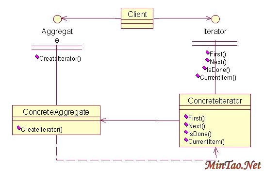 final void checkForComodification() { if (modCount != expectedModCount) throw new ConcurrentModificationException(); } } 至于迭代器模式的使用。正如引言中所列那样,客户程序要先得到具体容器角色,然后再通过具体容器角色得到具体迭代器角色。这样便可以使用具体迭代器角色来遍历容器了……