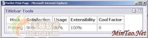 最后,你需要创建你自己的打印页面以使该图标做一些有用的事情。因为该页面不是portal上下文的一部分,所以你需要硬编码你的样式参考(style reference)。另外,由于在标准框架中的嵌套DIV的继承特点,所以你需要一些正式生成的HTML,后面再另上你的脚本生成和打印该portlet的部分代码: