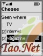 Form form = new Form("Choose one"); form.append(choices); Display.setCurrent(form); 图 2展示了一种EXCLUSIVE型的选项组,图3 展示了一种MULTIPLE型的选项组。注意,IMPLICIT值对于ChoiceGroup类是不可用的;如果使用之,将显示一个IllegalArgumentException异常。