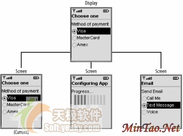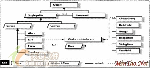 图1.display与screens间的关系 在MIDP GUI中共有三种类型的screen: