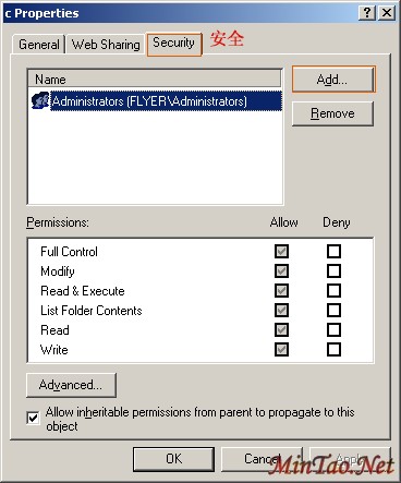 7,由于数据库文件所在目录的NTFS权限而引起的'不能更新。数据库或对象为只读"错误。 说明: WIN2K系统延续了WINNT系统的NTFS权限。 对于系统中的文夹都有默认的安全设置。 而通过HTTP对WWW访问时的系统默认用户是 iusr_计算机名 用户 ,它属于guest组。 当通过HTTP访问时,可以ASP或JSP,也或是PHP或.NET程序对数据进行修改操作: 比如: 当打开某一个文章时,程序设定,文章的阅读次数=原阅读次数+1 执行 conn.execute("update arts set clicks=clicks+1 where id=n") 语句时,如果 iusr_计算机名 用户没有对数据库的写权限时,就会出错. 解决方法: 找到数据库所在目录 右键》属性》安全选项卡》设置 iusr_计算机名 用户的写权限(当然,也可以是everyone) 没有相关教程