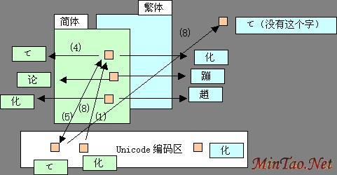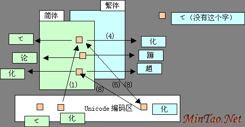 转换:系统主动的转换,比如从Unicode的“化”字到Big5的“化”字,内码变成Big5的。如果Big5没有对应的字,保留Unicode形式(&#xxxx;)