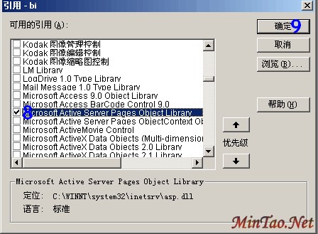 点击引用,然后选择其中的Microsoft Active Server Pages Object Library.