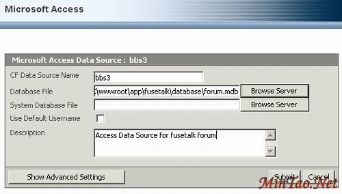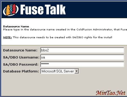 Fusetalk是一个功能十分强大的Coldfusion商业论坛,Macromedia公司的在线论坛就是采用Fusetalk。该论坛支持Mysql、Ms SQL Sever、Oracal、Access等多种数据库,所以通过安装这个论坛,基本可以了解Coldfusion MX安装数据库的方法了。