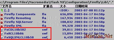 - 在C:\Program Files\Macromedia\Flash MX\Configuration\Firefly\Lib目录中,找到下图所示三个swf文件。依照不同的Firefly版本,可能文件名略有不同,不过没有关系。