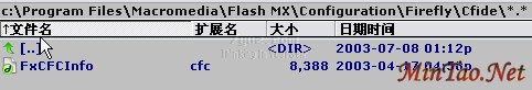 - FireFly的组件能够从其本身内部映射到你的ColdFusion。Firefly组件能够把CFC和其中可用的方法都罗列出来。但是开发者还是需要做一件事情。在路径C:\Program Files\Macromedia\Flash MX\Configuration\Firefly\CFIDE下找到下图显示的文件。