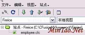 - 在DWMX中创建一个叫做Fireice的使用Coldfusion的站点。在fireice下创建一个叫做employee.cfc的页面。很快,我们就要在这个页面中添加方法。如下图所示。