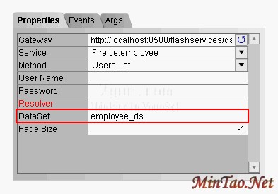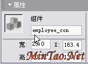 - 我们必须让employee_con和employee_ds能够通信,所以,还要做一项匹配的工作。打开employee_con实例的组件参数面板,在Property标签面板中的DataSet中输入employee_ds。这样就把两者联系起来了。