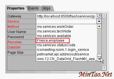 - 选定了Fireice.employee服务后,method窗口同样可以选择对应fireice.employee服务的方法。我们选定UsersList方法。如果,我们没有把FxCFCInfo.cfc文件拷贝的操作按照我们上面的要求放在C:\cfusionmx\wwwroot\CFIDE\路径下,我们可能刷新的操作就失效了,那么就需要手动输入,最后设定好的形式就像下图。