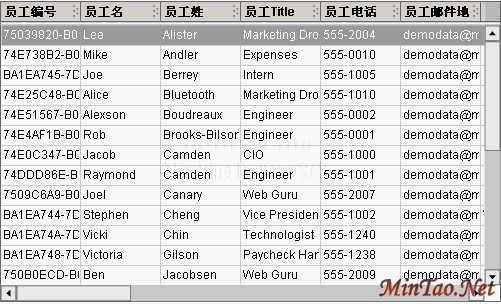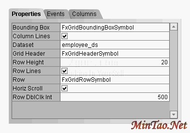 Column Lines是选择数据表输出时是否用显示线分开每列数据。Dataset设定成FxDataSet的实例名称employee_ds。Row Lines是是否用显示线分开每行数据。Horiz Scroll则是水平方向上是否带有滚动条。