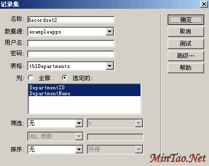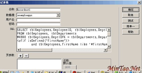 打开组件面板[窗口→组件] 点击+ 新建一个组件 如图所示:“名称”框指定 .cfc 文件名。输入名称时不要指定 .cfc 文件扩展名。“组件目录”框指定将要保存该组件的位置。为组件增加二个函数:访问方式设定为如果您从“访问”菜单中选择“远程”,则该函数可用作 Web 服务。请确保在“返回值类型”框中指定该函数返回的值的合适类型。增加参数为函数定义一个或多个参数,请从“部分”列表中选择“参数”,从弹出式菜单中选择该函数,单击加号 (+) 按钮,然后在右边输入新参数的详细信息。 [为该函数增加三个参数,类型均为字符串] 为函数增加主体: 窗口/绑定 单击+ 选择列表中的记录集(查询) 增加一个记录集 Recordset1输入下面的查询代码: