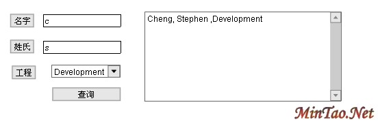 SELECT tblEmployees.EmployeeID, tblEmployees.DeptIDFK, tblEmployees.FirstName, tblEmployees.LastName, tblDepartments.DepartmentName FROM tblEmployees, tblDepartments WHERE tblEmployees.DeptIDFK = tblDepartments.DepartmentID <cfif isDefined("ming")> and tblEmployees.firstName like '#ming#%' </cfif> <cfif isDefined("xing")> and tblEmployees.lastName like '#xing#%' </cfif> <cfif isDefined("cheng")> and tblDepartments.DepartmentName like '#cheng#%' </cfif> ORDER BY tblEmployees.LastName, tblEmployees.FirstName