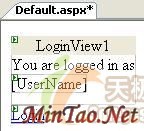 随后改变视图,把在图4中显示的文本输入到LoginView控件。一旦用户被认证该文本即被显示。然后,把LoginName控件拖放到LoginView控件之中。该LoginName控件将显示用于登录到应用程序的用户名。