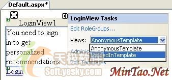 在LoginView控件的"Smart Tasks"菜单上,把视图改变为"LoggedInTemplate"(见图3)。