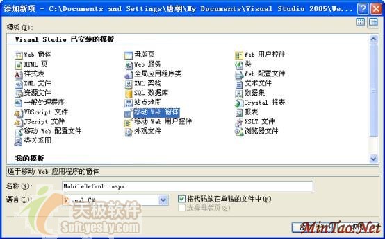 现在你可以按照如下的步骤在Visual Studio 2005创建一个新的ASP.NET 移动WEB程序: