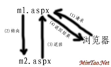 (3)Response.Redirect: 当浏览器请求aspx页面时,碰到Redirect(url)方法, 相当于告诉浏览器,你先需访问某页面,于是浏览器再向服务器发送一个到此页面的请求. 重定位是通过浏览器执行的,在服务器和浏览器之间会产生额外的往返过程。