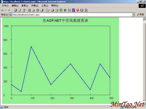 ~LineChart ( ) { g . Dispose ( ) ; b . Dispose ( ) ; } } void Page_Load ( Object sender , EventArgs e ) { LineChart c = new LineChart ( 640 , 480 , Page ) ; c . Title = " 在ASP.NET中实现数据图表" ; c . Xorigin = 0 ; c . ScaleX = 500 ; c . Xdivs = 5 ; c . Yorigin = 0 ; c . ScaleY = 1000 ; c . Ydivs = 5 ; c . AddValue ( 0 , 150 ) ; c . AddValue ( 50 , 50 ) ; c . AddValue ( 100 , 700 ) ; c . AddValue ( 200 , 150 ) ; c . AddValue ( 300 , 450 ) ; c . AddValue ( 400 , 75 ) ; c . AddValue ( 450 , 450 ) ; c . AddValue ( 500 , 250 ) ; c . Draw ( ) ; } </script >